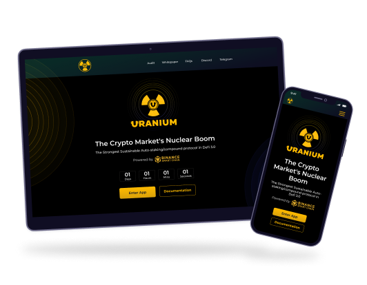 Uranium Finance landing page shows the protocol, roadmap and other information of a DeFi asset for the token holders.